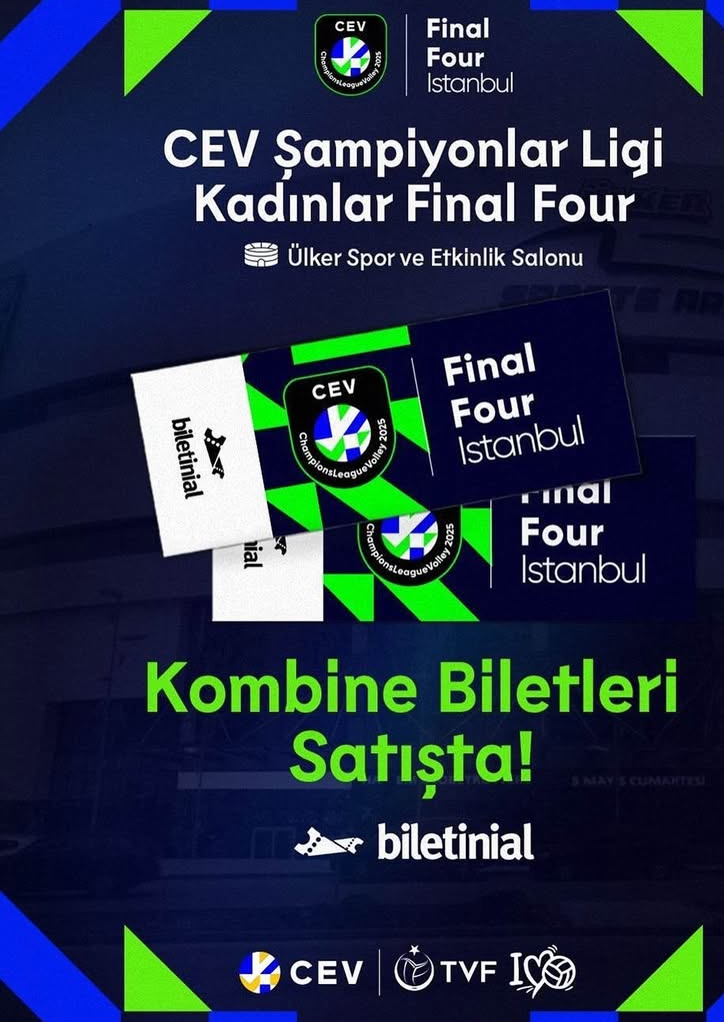 2025 CEV Kadınlar Şampiyonlar Ligi Dörtlü Finali’nin biletleri satışa çıktı.3-4 Mayıs tarihlerinde İstanbul’da Ülker Spor ve Etkinlik Salonu’nda oynanacak olan 2025 CEV Kadınlar Şampiyonlar Ligi Dörtlü Finalleri’nin biletleri Biletinal sitesinde satışa sunuldu.
