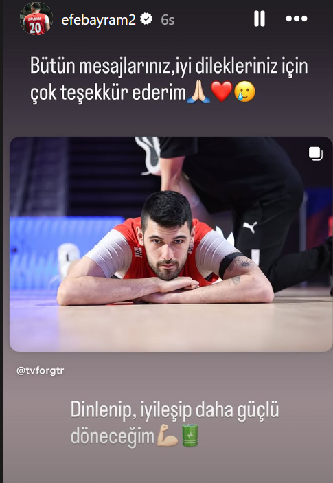 Efe Bayram ise bugün sosyal medyadan yaptığı paylaşımda sakatlığı ile ilgili kendisini soranlara teşekkür mesajı yayımladı.